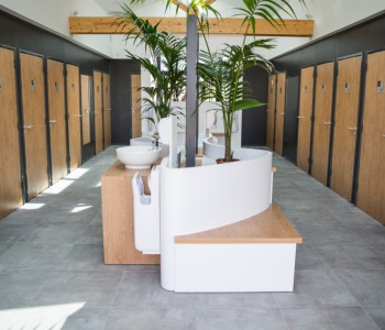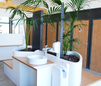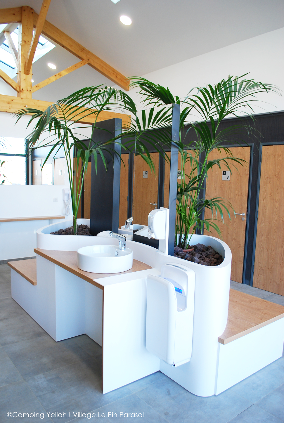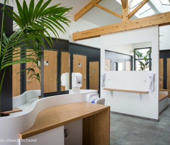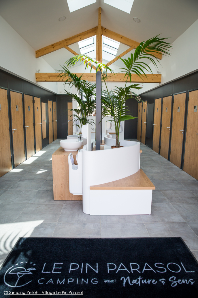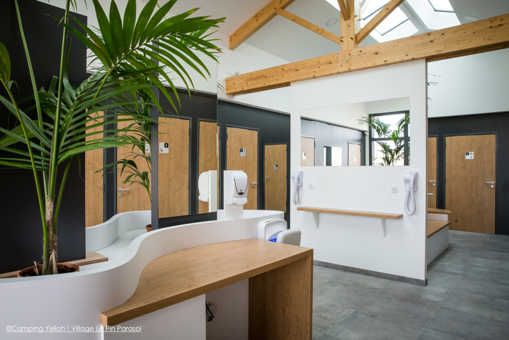 Ce projet visait à concevoir des blocs sanitaires premium, en rupture avec l’image traditionnelle associée aux équipements de camping. Pour atteindre cet objectif, une réflexion approfondie a été menée sur le choix des matériaux, l’agencement des espaces et le design du mobilier. L’ensemble a été pensé pour offrir confort, esthétisme et qualité, tout en répondant aux exigences fonctionnelles d’un lieu à forte fréquentation.