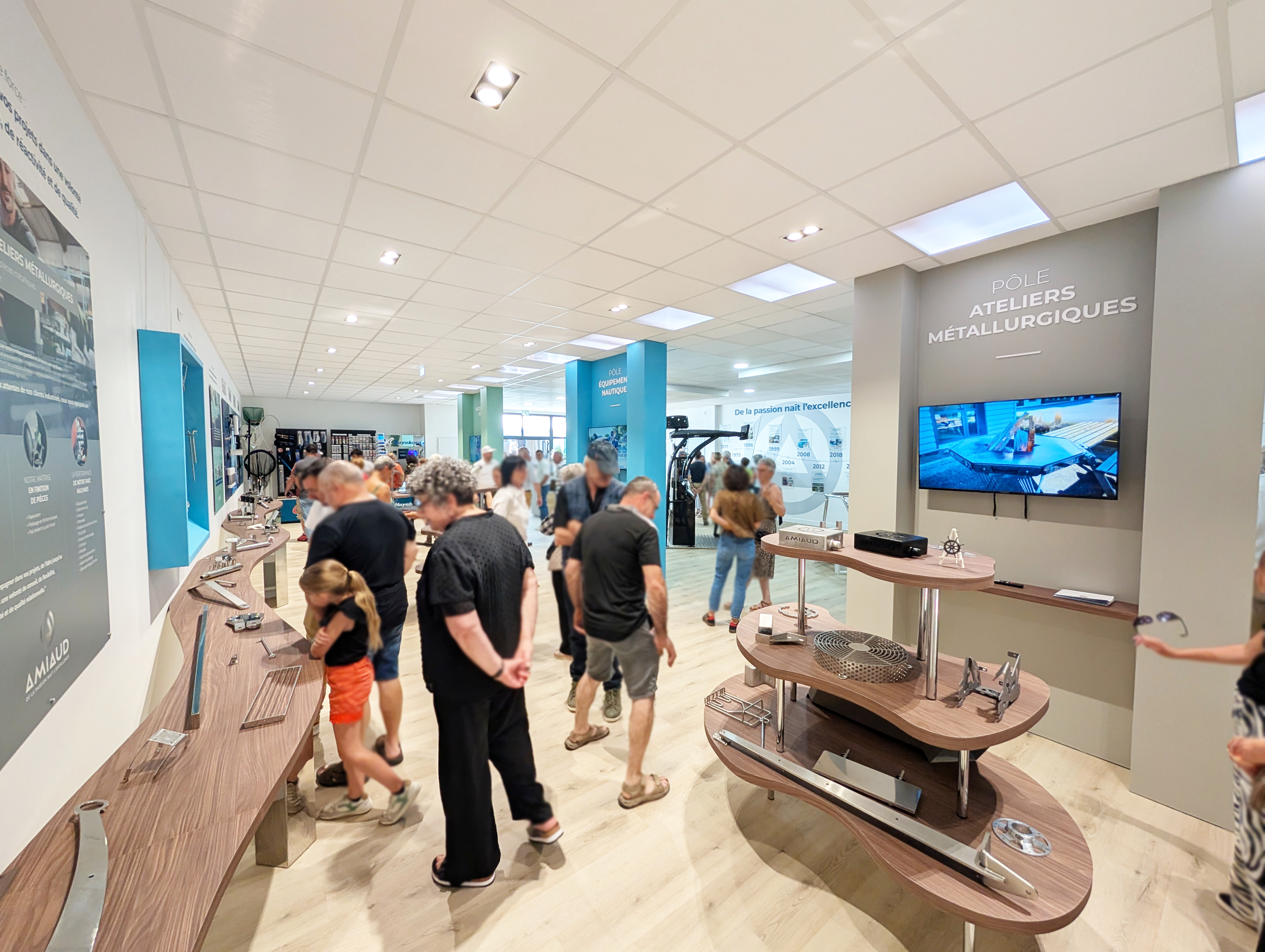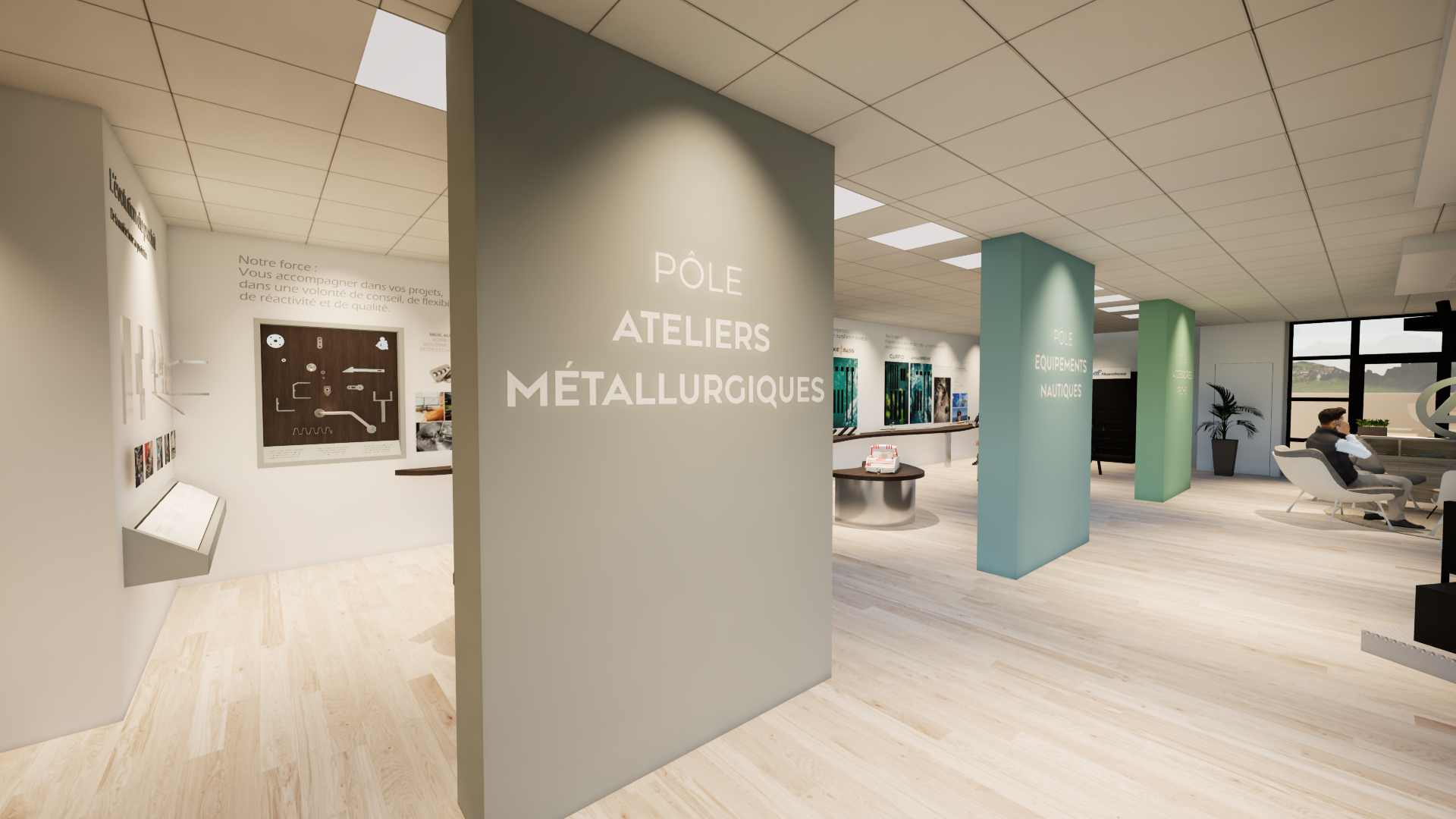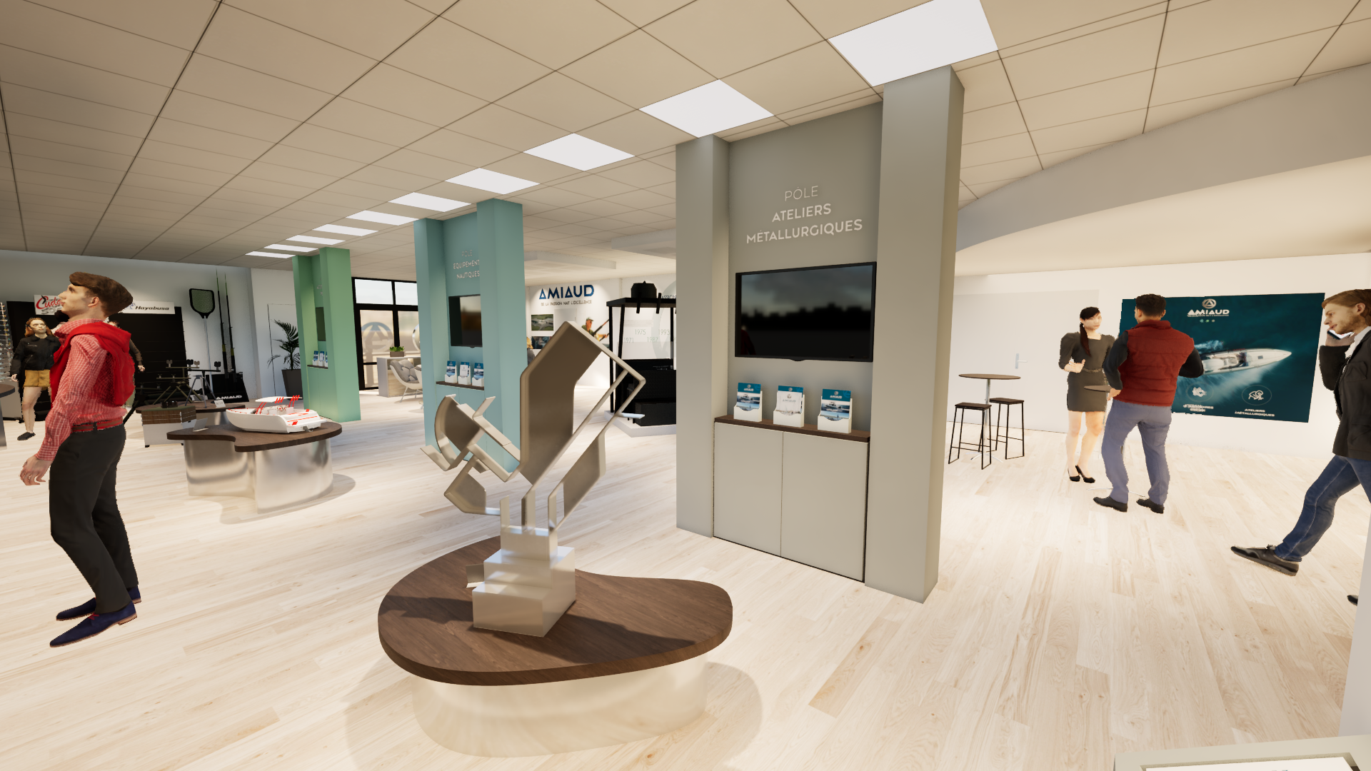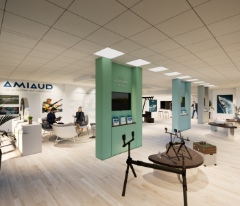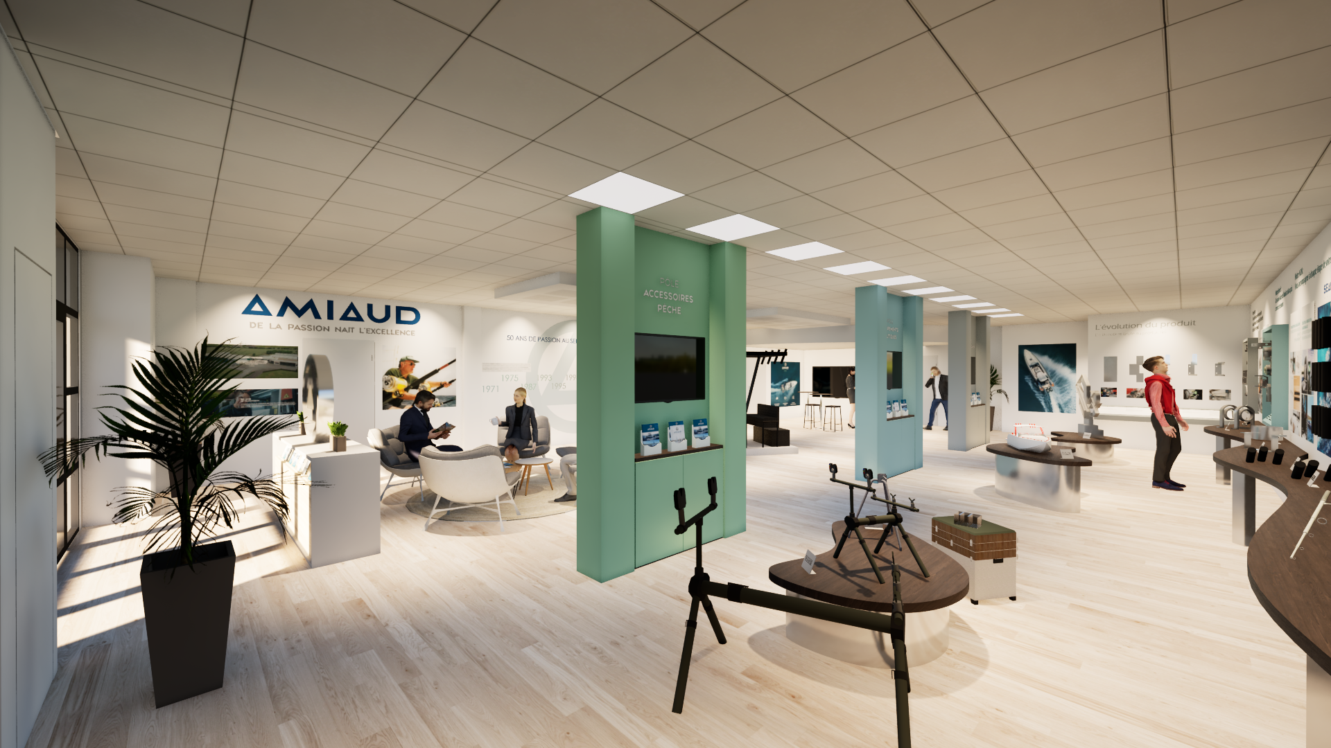 Le projet a consisté à repenser et agrandir le showroom afin d’offrir une expérience plus immersive et cohérente. Un nouveau concept a été développé en étroite relation avec la charte graphique de l’entreprise, assurant une continuité visuelle et identitaire dans l’aménagement des espaces. Au-delà de l’aspect esthétique, l’aménagement a été conçu pour valoriser le savoir-faire de l’entreprise, refléter ses valeurs fondamentales et mettre en lumière la diversité de ses domaines d’intervention. Chaque espace du showroom devient ainsi un support narratif, pensé pour illustrer concrètement l’expertise et l’engagement d’Amiaud.