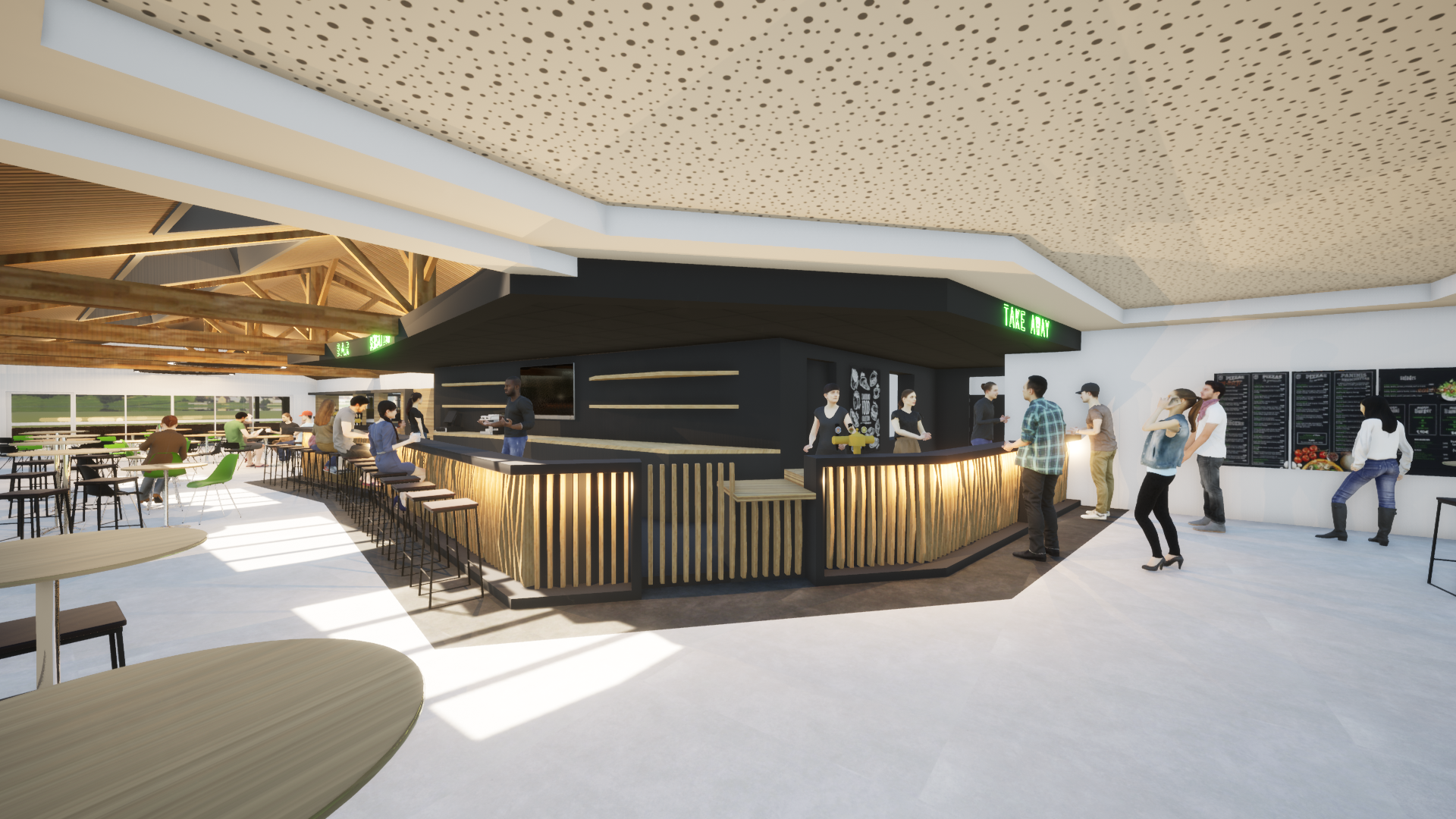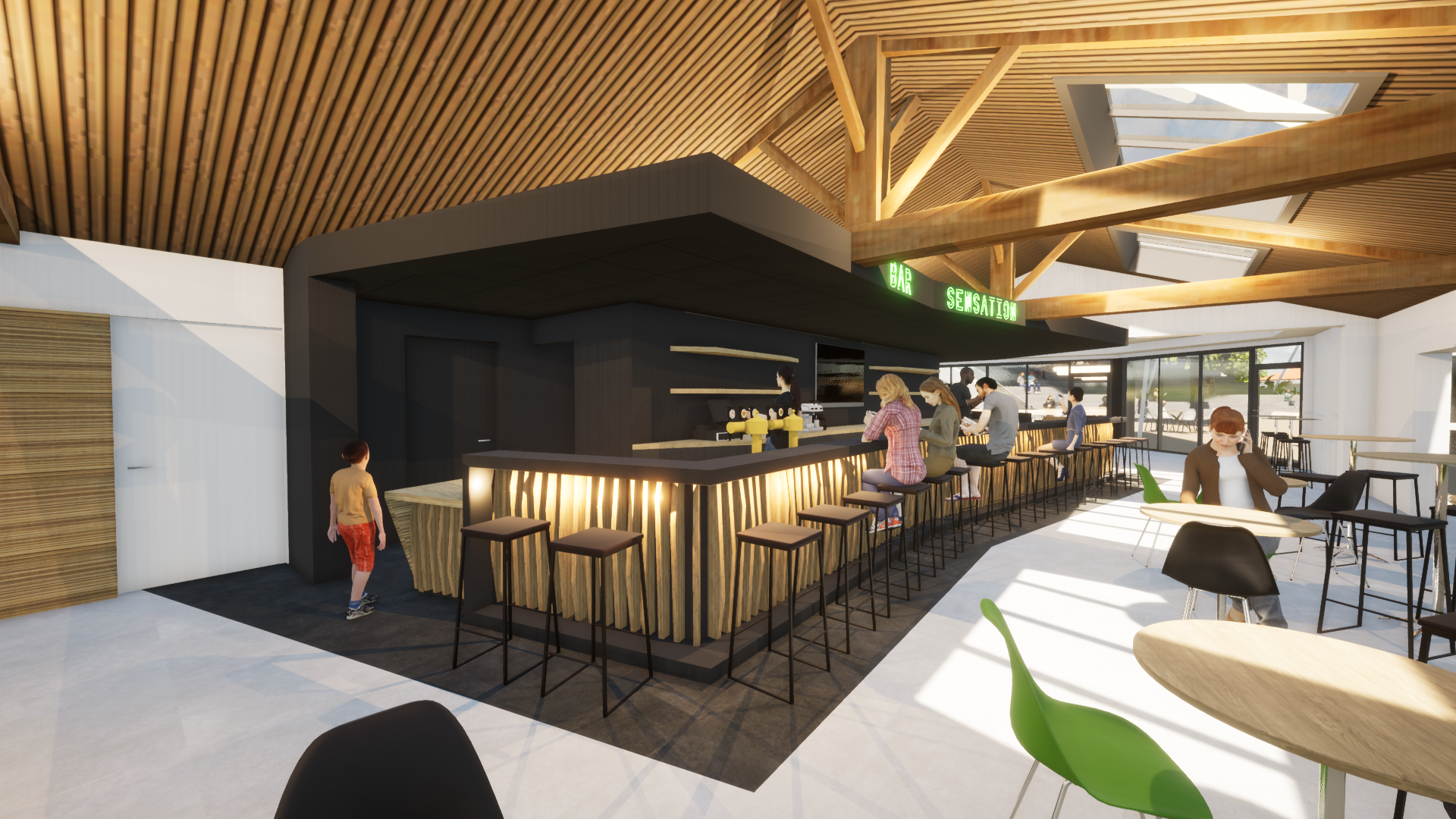 Le projet a consisté en la rénovation et la transformation complète de la salle polyvalente du camping afin d’y aménager un bar-restaurant convivial et fonctionnel. Ce nouvel espace est conçu pour accueillir jusqu’à 300 couverts, offrant ainsi une capacité d’accueil généreuse adaptée aux besoins du site, tout en valorisant l’expérience client à travers une ambiance soignée et une organisation optimisée.